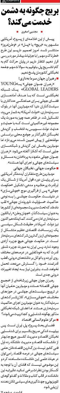 مجتبی اصغری: پیش از این خلاصهای از پروژه آمریکایی مشهور به «بریج» یا «پل» در «وطنامروز» منتشر شد. امروز تصمیم داریم این طرح خطرناک و مهم را با جزئیات بیشتر مورد بررسی قرار دهیم. انتظار داریم در پایان حرکت گام به گام تشریح پل، بتوانیم به سوالات مهم جامعه نخبگانی کشورمان پاسخ دهیم.