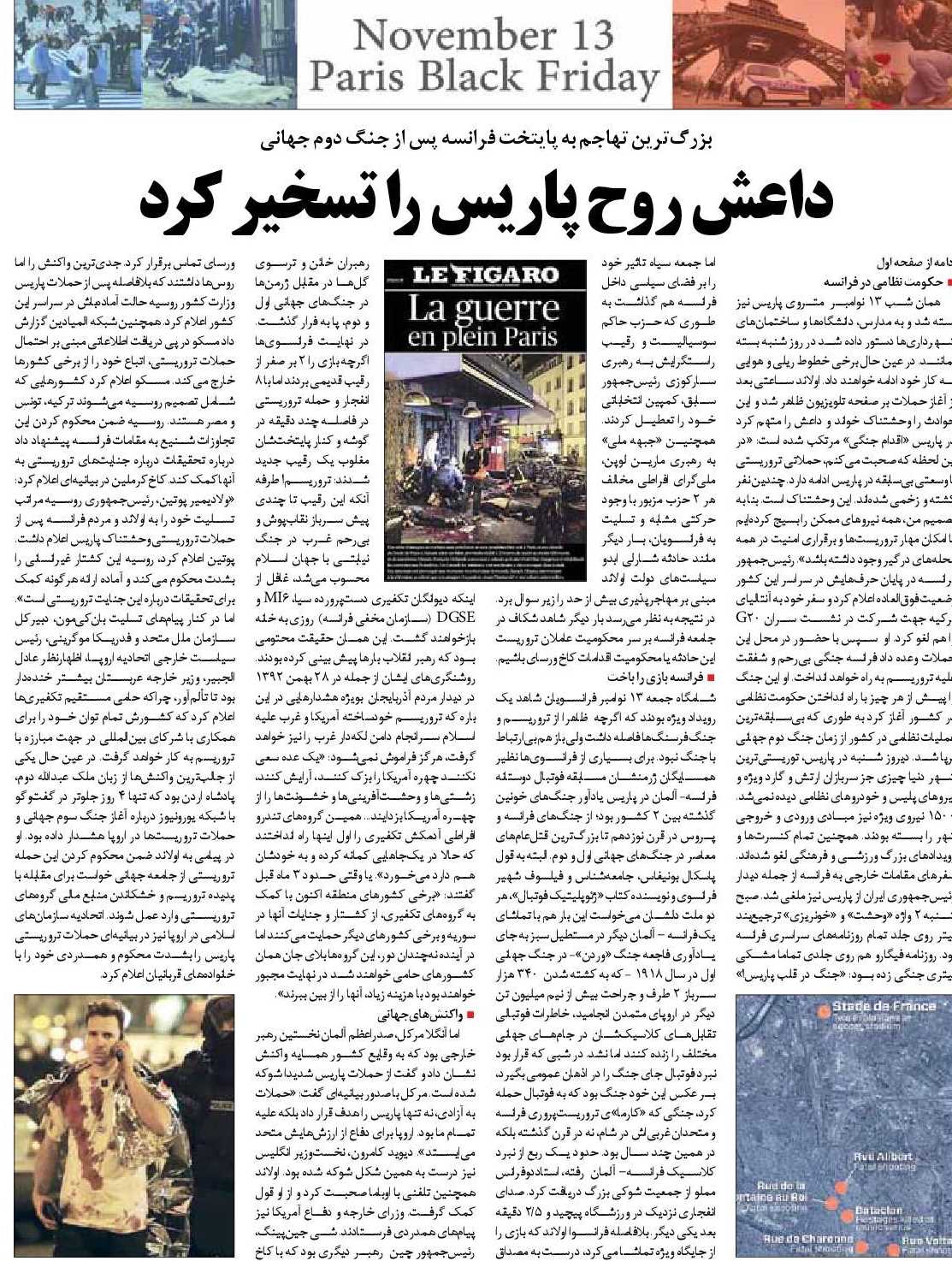 گروه بینالملل: با گذشت یک روز از «جمعه سیاه پاریس»، عروس سابق اروپا حالا تبدیل به بزرگترین پادگان قاره شده است. دیروز به دستور پلیس هیچ پاریسیای اجازه نداشت از خانه بیرون بیاید و بر شهر گرد مرده پاشیده بودند، در حالی که با وجود گذشت 5 سال از جنگ وحشیانه مزدوران غرب در عراق و شام، زندگی هنوز در رگهای بغداد و دمشق جاری است. کمی پیش از نیمهشب جمعه 22 آبان (به وقت تهران) بود که سلسله حملات بیسابقه تروریستی در محدودهای وسیع از پایتخت از مرکز تا شمال و شرق پاریس، یکی پس از دیگری به مثابه سیلیهایی غافلگیرکننده بر صورت به اصطلاح حامیان برج عاجنشین براندازی بشار اسد به واسطه همان تروریستهای مورد حمایت غرب در شام نواخته شد. طی یک کابوس حقیقی