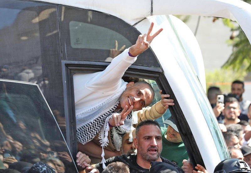 تصاویر نشان میداد اسرای آزادشده فلسطینی در چارچوب توافق تبادل اسرا، پس از آزادی و ورود به رامالله، علامت پیروزی را نشان میدادند. یکی از اسرای فلسطینی آزادشده در چارچوب توافق تبادل اسرا به الجزیره گفت: «ما دستان و حتی پاهای مردم غزه و مجاهدانش را میبوسیم، چرا که ما را به این شیوه آبرومندانه آزاد کردند».