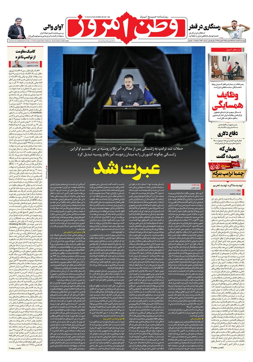 روزنامه وطن امروز ۰۲ اسفند ۱۴۰۳ شماره ۴۲۶۰ صفحه ۱۵۰۲۰۹