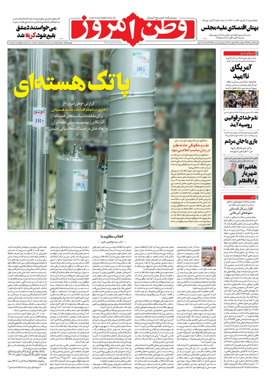 روزنامه وطن امروز - تاریخ ۱۴ تير ۱۳۹۹